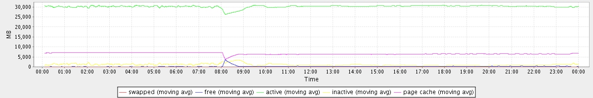 avg(swapped) = 0.23 avg(free) = 218.03 avg(active) = 30169.44 avg(inactive) = 1083.29 avg(page cache) = 6594.05