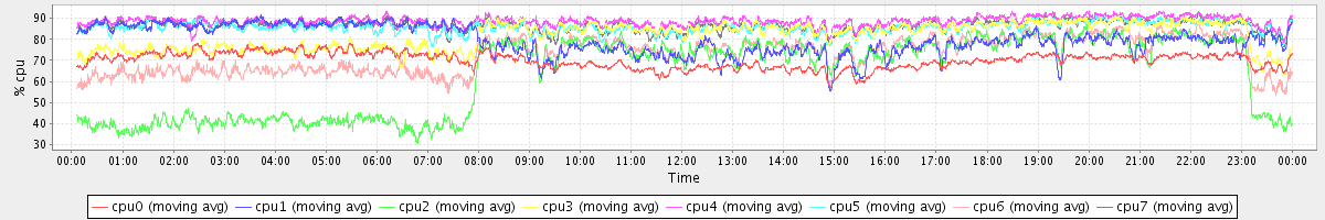 avg(cpu0) = 69.99 avg(cpu1) = 79.74 avg(cpu2) = 63.38 avg(cpu3) = 81.84 avg(cpu4) = 88.76 avg(cpu5) = 85.78 avg(cpu6) = 72.79 avg(cpu7) = 86.68
