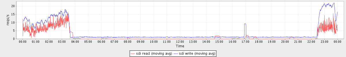 avg(sda read) = 28.43 avg(sda write) = 43.37