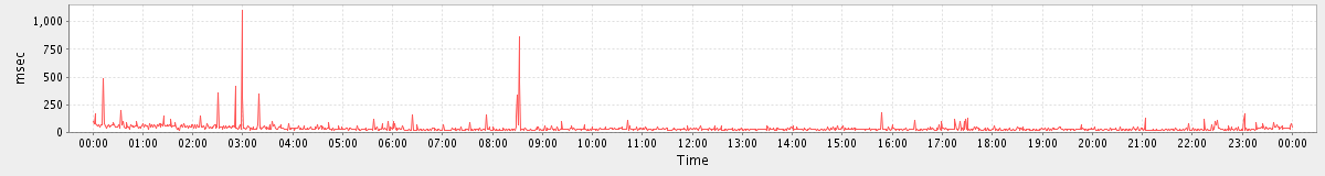 avg(DeleteAccountRequest) = 6425.00 avg(GetFreeBusyRequest) = 407.97 avg(CheckRecurConflictsRequest) = 349.58 avg(SendInviteReplyRequest) = 557.06 avg(AutoCompleteRequest) = 570.48 avg(ApplyFilterRulesRequest) = 25160.67 avg(ConvActionRequest.delete) = 908.09 avg(FolderActionRequest.empty) = 2173.32 avg(BackupRequest) = 68887.50 avg(GetQuotaUsageRequest) = 1146.00