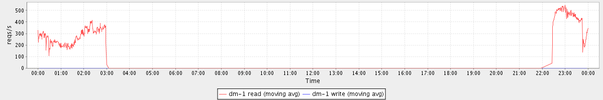 avg(dm-1 read) = 1223.24 avg(dm-1 write) = 0.33