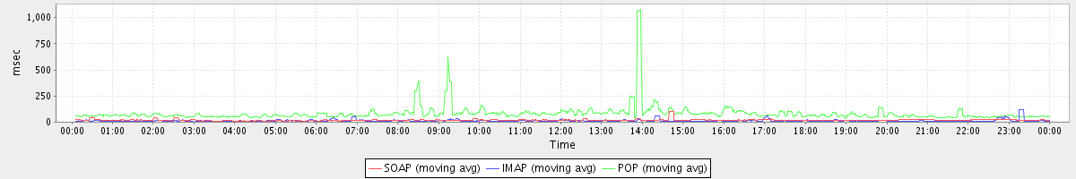 avg(IMAP) = 19.51 avg(IMAP SSL) = 1064.21 avg(POP) = 0.03 avg(POP SSL) = 77.42