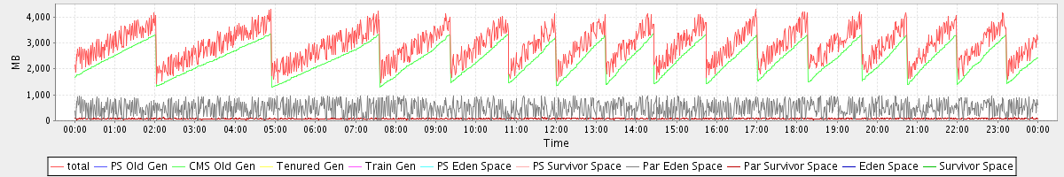 avg(total) = 2905.79 avg(PS Old Gen) = 0.00 avg(CMS Old Gen) = 2341.34 avg(Tenured Gen) = 0.00 avg(Train Gen) = 0.00 avg(PS Eden Space) = 0.00 avg(PS Survivor Space) = 0.00 avg(Par Eden Space) = 483.96 avg(Par Survivor Space) = 80.49 avg(Eden Space) = 0.00 avg(Survivor Space) = 0.00