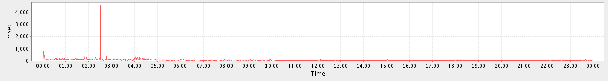 avg(ConvActionRequest.!read) = 310.55 avg(ModifyAppointmentRequest) = 259.06 avg(SendInviteReplyRequest) = 290.50 avg(AutoCompleteRequest) = 559.27 avg(ConvActionRequest.delete) = 308.82 avg(SearchGalRequest) = 523.69 avg(BackupQueryRequest) = 657.75 avg(FolderActionRequest.empty) = 6280.63 avg(BackupRequest) = 15031.00 avg(GetQuotaUsageRequest) = 1172.00