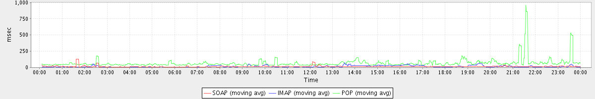 avg(IMAP) = 15.66 avg(IMAP SSL) = 1008.12 avg(POP) = 0.44 avg(POP SSL) = 64.27