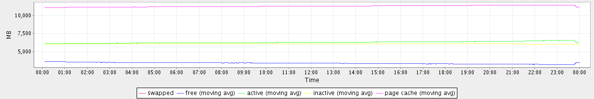 avg(swapped) = 0.00 avg(free) = 3380.72 avg(active) = 6284.23 avg(inactive) = 6085.28 avg(page cache) = 11283.81