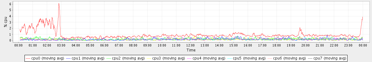 avg(cpu0) = 0.09 avg(cpu1) = 0.02 avg(cpu2) = 0.04 avg(cpu3) = 0.01 avg(cpu4) = 0.00 avg(cpu5) = 0.00 avg(cpu6) = 0.02 avg(cpu7) = 0.00