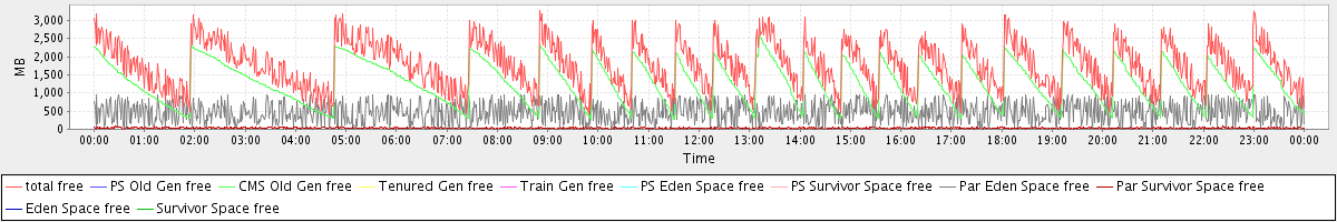avg(total free) = 1781.83 avg(PS Old Gen free) = 0.00 avg(CMS Old Gen free) = 1272.80 avg(Tenured Gen free) = 0.00 avg(Train Gen free) = 0.00 avg(PS Eden Space free) = 0.00 avg(PS Survivor Space free) = 0.00 avg(Par Eden Space free) = 476.69 avg(Par Survivor Space free) = 32.34 avg(Eden Space free) = 0.00 avg(Survivor Space free) = 0.00