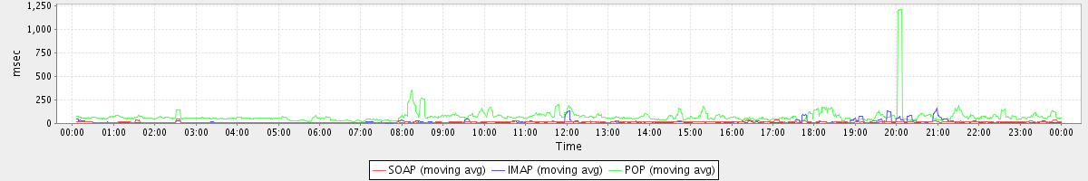 Host zm04.stanford.edu: Mailboxd: Response Time by Client Protocol