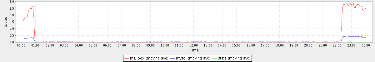 avg(mailbox) = 0.27 avg(mysql) = 0.06 avg(stats) = 0.00