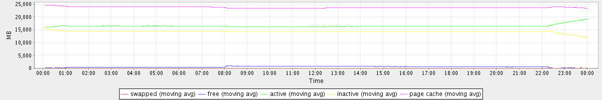 avg(swapped) = 0.23 avg(free) = 525.28 avg(active) = 16486.27 avg(inactive) = 14243.36 avg(page cache) = 23721.50