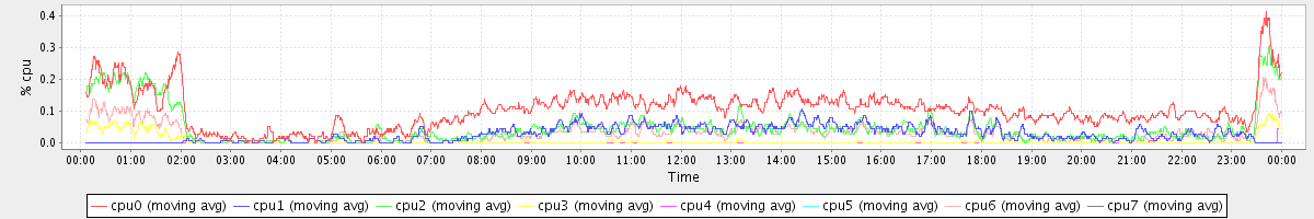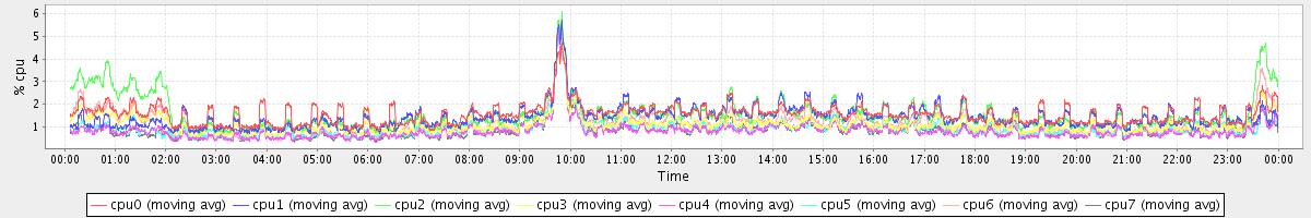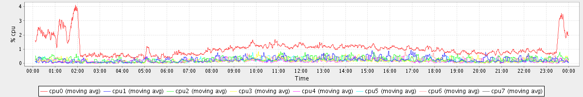 avg(cpu0) = 0.10 avg(cpu1) = 0.03 avg(cpu2) = 0.05 avg(cpu3) = 0.01 avg(cpu4) = 0.00 avg(cpu5) = 0.00 avg(cpu6) = 0.03 avg(cpu7) = 0.00
