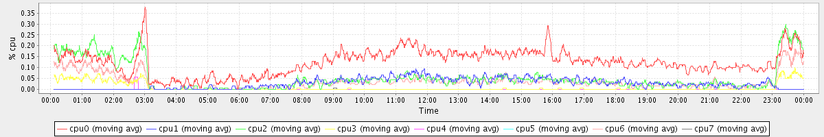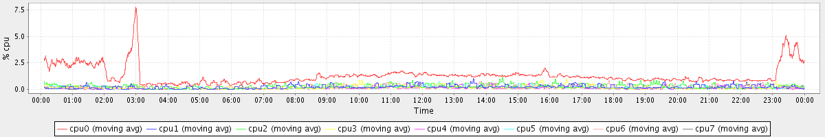 avg(cpu0) = 0.12 avg(cpu1) = 0.03 avg(cpu2) = 0.05 avg(cpu3) = 0.01 avg(cpu4) = 0.00 avg(cpu5) = 0.00 avg(cpu6) = 0.04 avg(cpu7) = 0.00