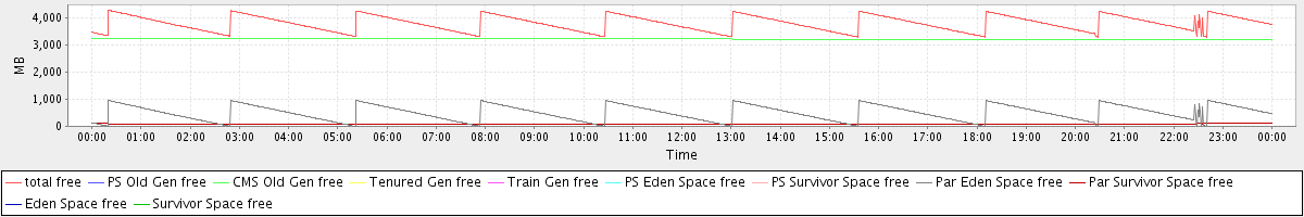 avg(total free) = 3803.63 avg(PS Old Gen free) = 0.00 avg(CMS Old Gen free) = 3226.92 avg(Tenured Gen free) = 0.00 avg(Train Gen free) = 0.00 avg(PS Eden Space free) = 0.00 avg(PS Survivor Space free) = 0.00 avg(Par Eden Space free) = 496.99 avg(Par Survivor Space free) = 79.72 avg(Eden Space free) = 0.00 avg(Survivor Space free) = 0.00
