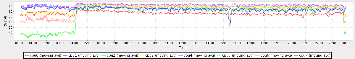 avg(cpu0) = 76.54 avg(cpu1) = 84.42 avg(cpu2) = 75.49 avg(cpu3) = 87.22 avg(cpu4) = 92.15 avg(cpu5) = 90.29 avg(cpu6) = 82.82 avg(cpu7) = 89.69