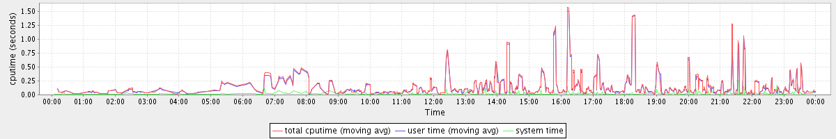 avg(total cputime) = 0.05 avg(user time) = 0.05 avg(system time) = 0.00