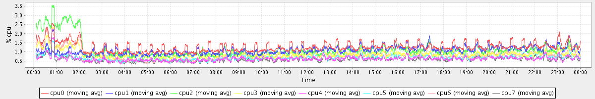 avg(cpu0) = 1.27 avg(cpu1) = 1.08 avg(cpu2) = 1.14 avg(cpu3) = 0.89 avg(cpu4) = 0.63 avg(cpu5) = 0.69 avg(cpu6) = 0.82 avg(cpu7) = 0.59