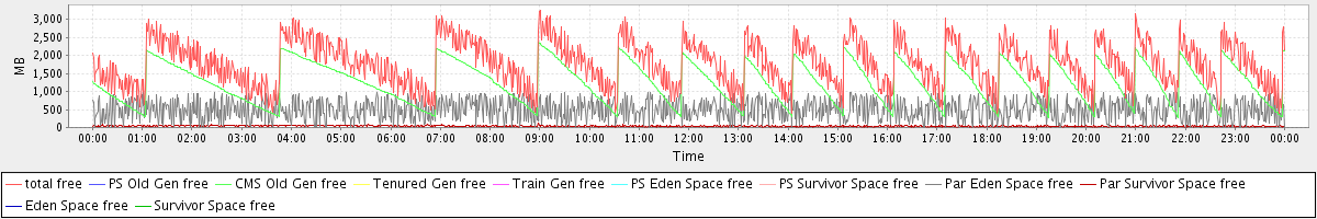 avg(total free) = 1775.96 avg(PS Old Gen free) = 0.00 avg(CMS Old Gen free) = 1241.79 avg(Tenured Gen free) = 0.00 avg(Train Gen free) = 0.00 avg(PS Eden Space free) = 0.00 avg(PS Survivor Space free) = 0.00 avg(Par Eden Space free) = 495.73 avg(Par Survivor Space free) = 38.44 avg(Eden Space free) = 0.00 avg(Survivor Space free) = 0.00