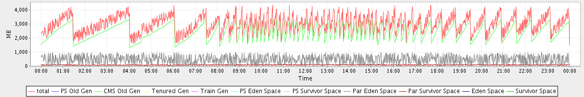 avg(total) = 3007.36 avg(PS Old Gen) = 0.00 avg(CMS Old Gen) = 2432.59 avg(Tenured Gen) = 0.00 avg(Train Gen) = 0.00 avg(PS Eden Space) = 0.00 avg(PS Survivor Space) = 0.00 avg(Par Eden Space) = 486.62 avg(Par Survivor Space) = 88.15 avg(Eden Space) = 0.00 avg(Survivor Space) = 0.00