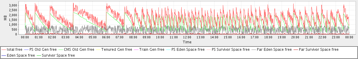 avg(total free) = 1727.20 avg(PS Old Gen free) = 0.00 avg(CMS Old Gen free) = 1217.00 avg(Tenured Gen free) = 0.00 avg(Train Gen free) = 0.00 avg(PS Eden Space free) = 0.00 avg(PS Survivor Space free) = 0.00 avg(Par Eden Space free) = 475.94 avg(Par Survivor Space free) = 34.27 avg(Eden Space free) = 0.00 avg(Survivor Space free) = 0.00