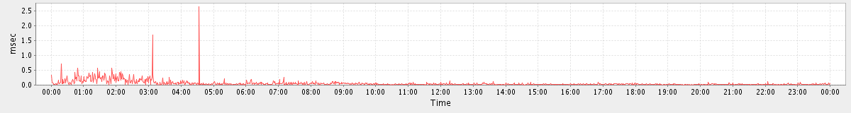avg(BackupQueryRequest) = 381.75 avg(BrowseRequest) = 497.50 avg(CreateAppointmentExceptionRequest) = 344.00 avg(SendInviteReplyRequest) = 637.87 avg(AutoCompleteRequest) = 637.71 avg(RemoveAttachmentsRequest) = 350.67 avg(ConvActionRequest.delete) = 796.27 avg(FolderActionRequest.empty) = 1875.51 avg(BackupRequest) = 5093.50 avg(GetQuotaUsageRequest) = 1268.00