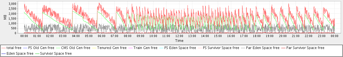 avg(total free) = 1668.71 avg(PS Old Gen free) = 0.00 avg(CMS Old Gen free) = 1159.59 avg(Tenured Gen free) = 0.00 avg(Train Gen free) = 0.00 avg(PS Eden Space free) = 0.00 avg(PS Survivor Space free) = 0.00 avg(Par Eden Space free) = 478.44 avg(Par Survivor Space free) = 30.68 avg(Eden Space free) = 0.00 avg(Survivor Space free) = 0.00