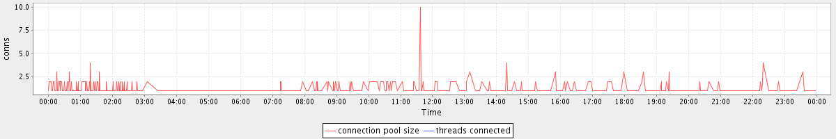 avg(connection pool size) = 0.42 avg(threads connected) = 0.00