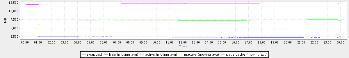 avg(swapped) = 0.00 avg(free) = 2340.92 avg(active) = 7249.81 avg(inactive) = 6113.33 avg(page cache) = 12248.26
