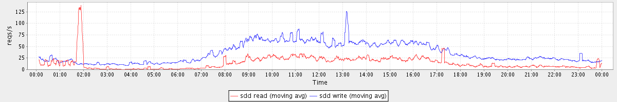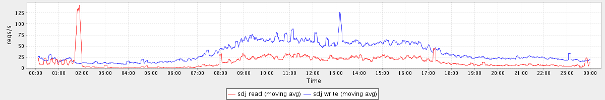 avg(sda1 read) = 23.20 avg(sda1 write) = 47.36