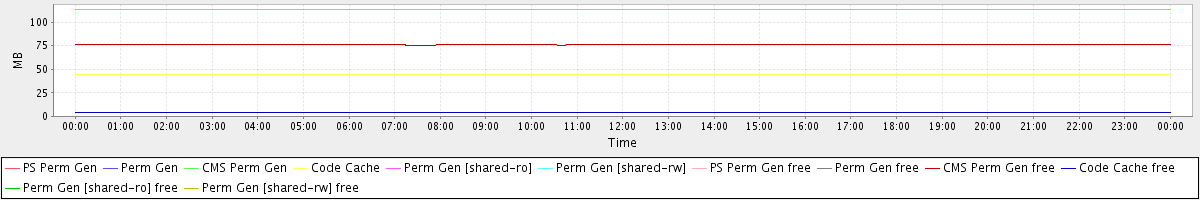 avg(PS Perm Gen) = 0.00 avg(Perm Gen) = 0.00 avg(CMS Perm Gen) = 113.47 avg(Code Cache) = 44.12 avg(Perm Gen [shared-ro]) = 0.00 avg(Perm Gen [shared-rw]) = 0.00 avg(PS Perm Gen free) = 0.00 avg(Perm Gen free) = 0.00 avg(CMS Perm Gen free) = 75.77 avg(Code Cache free) = 3.76 avg(Perm Gen [shared-ro] free) = 0.00 avg(Perm Gen [shared-rw] free) = 0.00