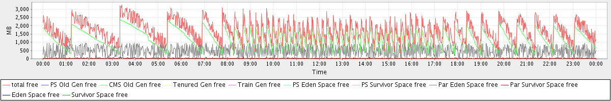 avg(total free) = 1701.62 avg(PS Old Gen free) = 0.00 avg(CMS Old Gen free) = 1197.91 avg(Tenured Gen free) = 0.00 avg(Train Gen free) = 0.00 avg(PS Eden Space free) = 0.00 avg(PS Survivor Space free) = 0.00 avg(Par Eden Space free) = 476.27 avg(Par Survivor Space free) = 27.44 avg(Eden Space free) = 0.00 avg(Survivor Space free) = 0.00