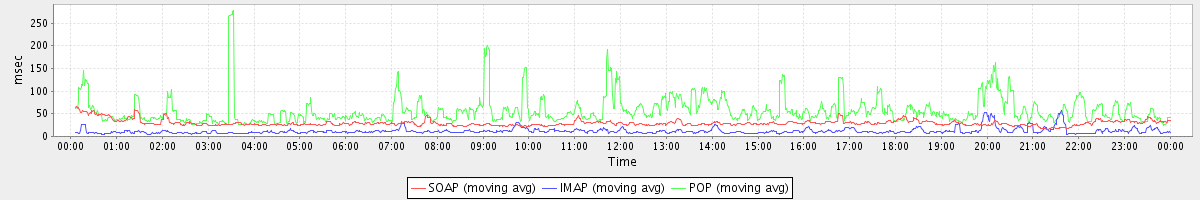 Host zm05.stanford.edu: Mailboxd: Response Time by Client Protocol