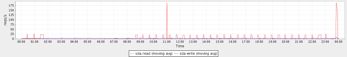 avg(sda2 read) = 0.21 avg(sda2 write) = 7.96