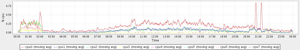 avg(cpu0) = 1.53 avg(cpu1) = 0.38 avg(cpu2) = 0.40 avg(cpu3) = 0.31 avg(cpu4) = 0.26 avg(cpu5) = 0.26 avg(cpu6) = 0.36 avg(cpu7) = 0.27