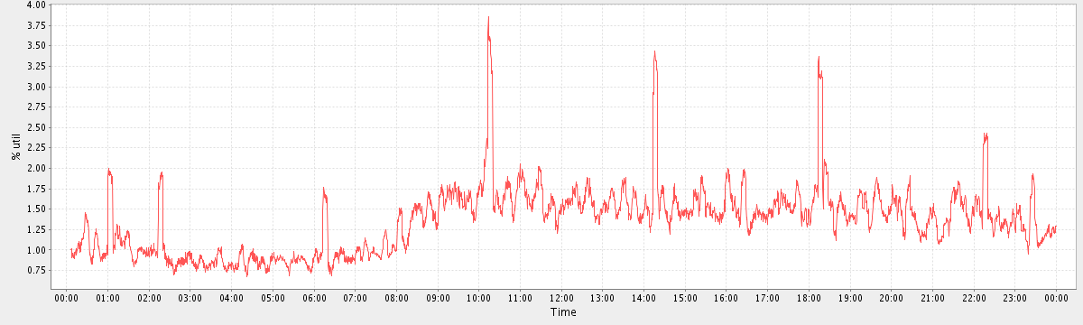 avg(user) = 5.24 avg(sys) = 0.42 avg(idle) = 94.29 avg(iowait) = 0.02 avg(nice) = 0.00 avg(irq) = 0.00 avg(softirq) = 0.00
