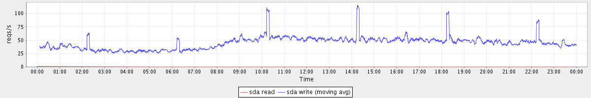 avg(sda read) = 0.00 avg(sda write) = 45.10