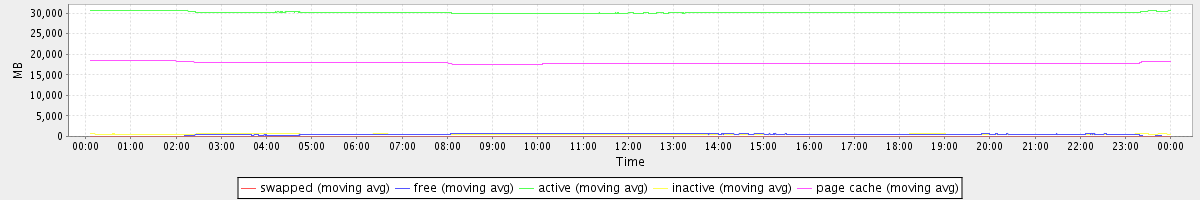 avg(swapped) = 0.23 avg(free) = 495.50 avg(active) = 30185.77 avg(inactive) = 567.76 avg(page cache) = 17838.33