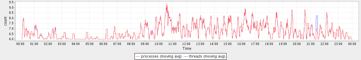 avg(processes) = 6.73 avg(threads) = 6.73