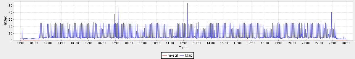avg(mysql) = 0.19 avg(ldap) = 7.05