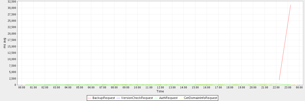 avg(BackupRequest) = 16544.50 avg(VersionCheckRequest) = 497.00 avg(AuthRequest) = 174.25 avg(GetDomainInfoRequest) = 11.84