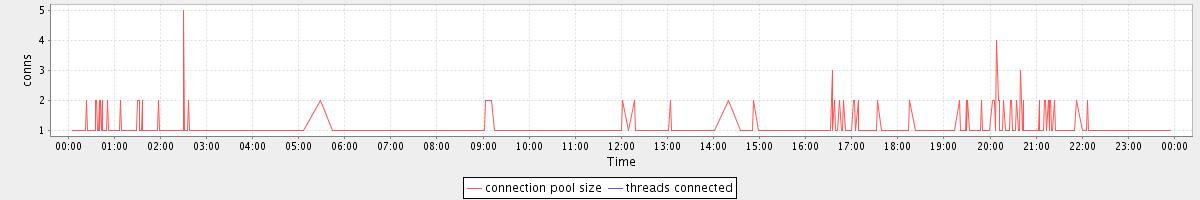 avg(connection pool size) = 0.35 avg(threads connected) = 0.00
