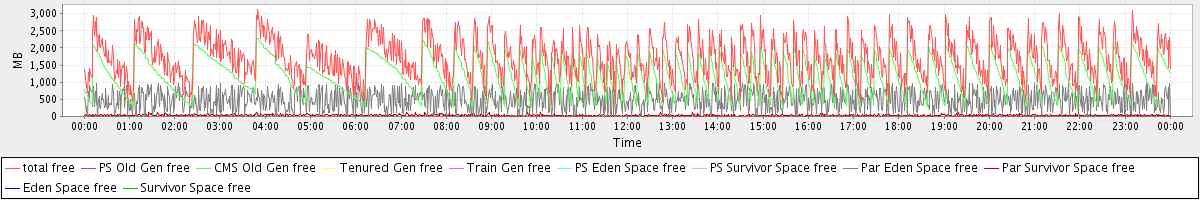 avg(total free) = 1705.84 avg(PS Old Gen free) = 0.00 avg(CMS Old Gen free) = 1185.41 avg(Tenured Gen free) = 0.00 avg(Train Gen free) = 0.00 avg(PS Eden Space free) = 0.00 avg(PS Survivor Space free) = 0.00 avg(Par Eden Space free) = 489.05 avg(Par Survivor Space free) = 31.37 avg(Eden Space free) = 0.00 avg(Survivor Space free) = 0.00