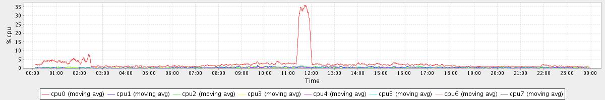 avg(cpu0) = 2.49 avg(cpu1) = 0.35 avg(cpu2) = 0.38 avg(cpu3) = 0.26 avg(cpu4) = 0.18 avg(cpu5) = 0.23 avg(cpu6) = 0.32 avg(cpu7) = 0.23