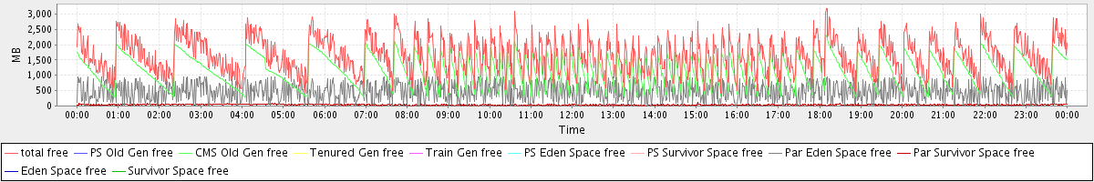 avg(total free) = 1642.19 avg(PS Old Gen free) = 0.00 avg(CMS Old Gen free) = 1131.97 avg(Tenured Gen free) = 0.00 avg(Train Gen free) = 0.00 avg(PS Eden Space free) = 0.00 avg(PS Survivor Space free) = 0.00 avg(Par Eden Space free) = 474.73 avg(Par Survivor Space free) = 35.49 avg(Eden Space free) = 0.00 avg(Survivor Space free) = 0.00