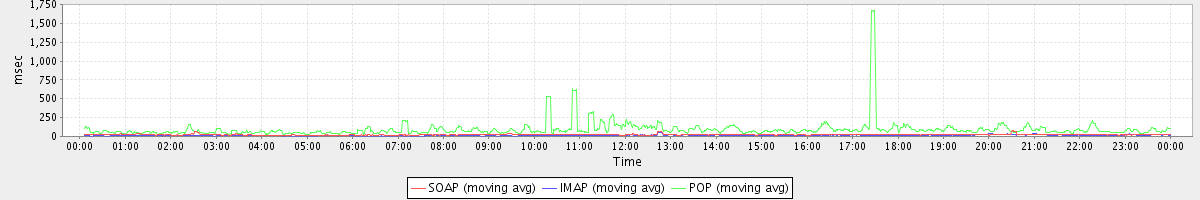 Host zm04.stanford.edu: Mailboxd: Response Time by Client Protocol