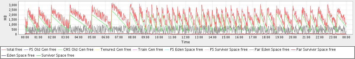 avg(total free) = 1740.45 avg(PS Old Gen free) = 0.00 avg(CMS Old Gen free) = 1198.25 avg(Tenured Gen free) = 0.00 avg(Train Gen free) = 0.00 avg(PS Eden Space free) = 0.00 avg(PS Survivor Space free) = 0.00 avg(Par Eden Space free) = 477.49 avg(Par Survivor Space free) = 64.72 avg(Eden Space free) = 0.00 avg(Survivor Space free) = 0.00