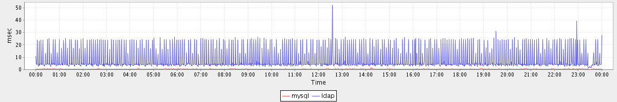 avg(mysql) = 0.21 avg(ldap) = 7.56
