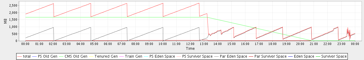avg(total) = 1467.31 avg(PS Old Gen) = 0.00 avg(CMS Old Gen) = 930.84 avg(Tenured Gen) = 0.00 avg(Train Gen) = 0.00 avg(PS Eden Space) = 0.00 avg(PS Survivor Space) = 0.00 avg(Par Eden Space) = 507.26 avg(Par Survivor Space) = 29.21 avg(Eden Space) = 0.00 avg(Survivor Space) = 0.00