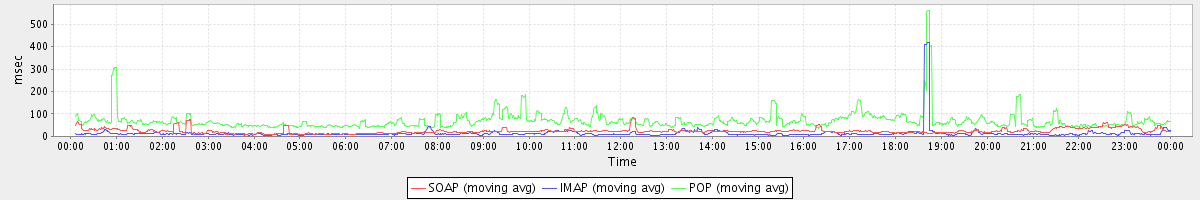Host zm03.stanford.edu: Mailboxd: Response Time by Client Protocol