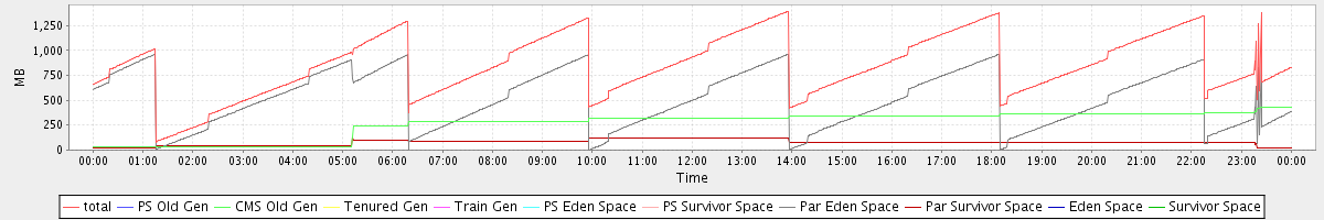 avg(total) = 849.88 avg(PS Old Gen) = 0.00 avg(CMS Old Gen) = 264.90 avg(Tenured Gen) = 0.00 avg(Train Gen) = 0.00 avg(PS Eden Space) = 0.00 avg(PS Survivor Space) = 0.00 avg(Par Eden Space) = 509.58 avg(Par Survivor Space) = 75.41 avg(Eden Space) = 0.00 avg(Survivor Space) = 0.00